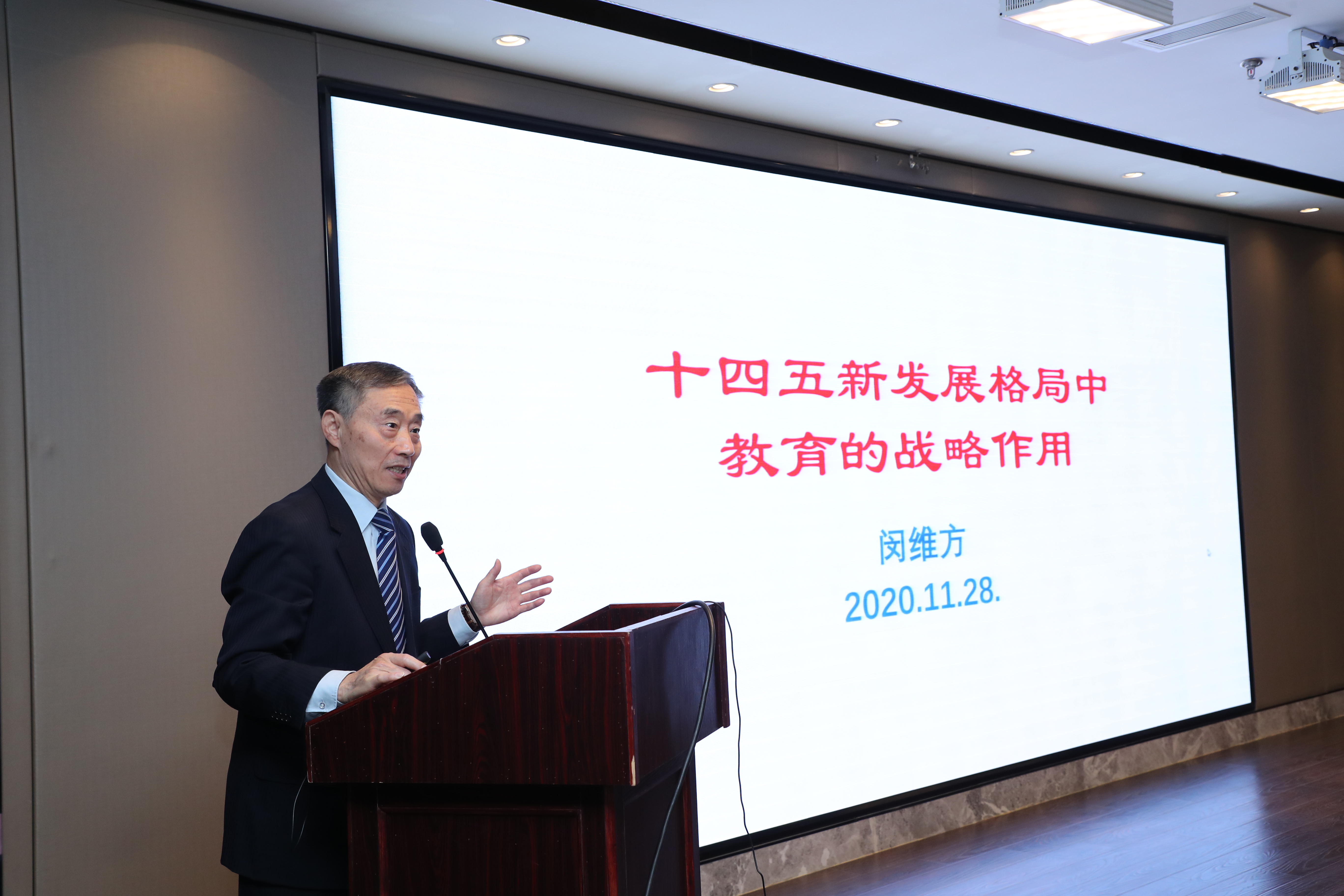为深入学习、领会党的十九届五中全会有关内容,推进教育事业发展更好地服务国家战略,2020年11月28-30日,中国教育发展战略学会隆重召开“决胜全面小康与十四五教育发展战略暨2020年中国教育发展战略学会学术年会”。会议以学习党的十九大五中全会会议精神为基础,结合对新时代中国特色社会主义思想的精神实质和丰富内涵的把握,全面总结教育在建成小康社会、打赢脱贫攻坚过程中的贡献和作用发挥,总结梳理中长期教育规划纲要、十三五规划期教育改革发展所遇到的突出问题和焦点难点,结合当前疫情应对常态化的现实需要,研究讨论十四五规划期教育发展最为重大紧迫的重点难点问题,为十四五规划期的宏观教育决策提供全面性、战略性、前瞻性研究成果和高水平服务咨询。